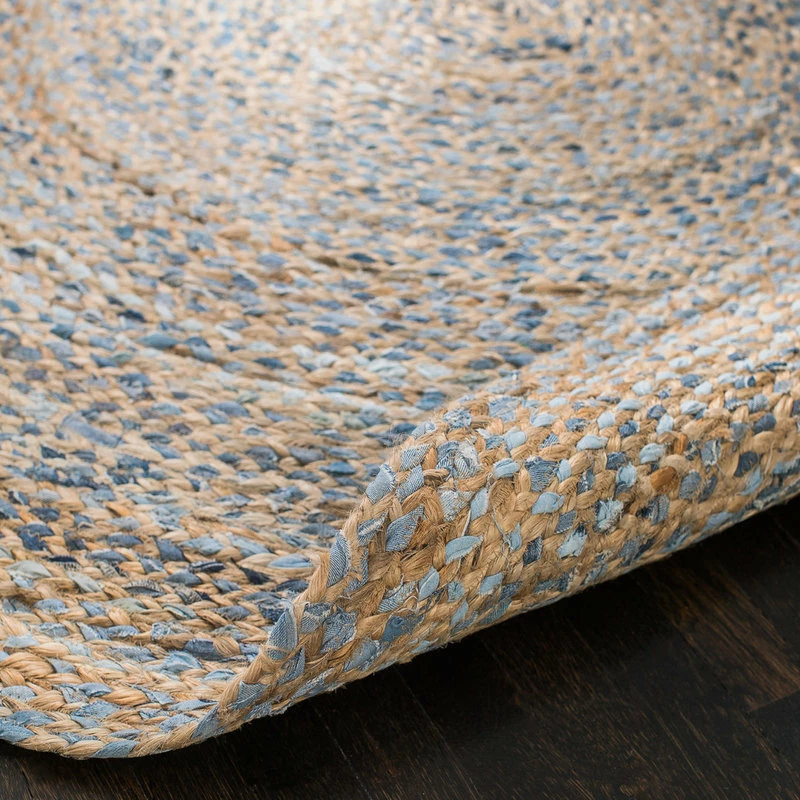 Add a spot of casual cool to your space with the Kerala Denim and Jute Round Rug. This design from Anji Mountain uses upcycled denim to create a floor accent that pays homage to the fabric’s well-worn history as the uniform for both the hard rocker and hard working. As with all Anji Mountain pieces, this rug contemporary style and gives it a modern edge.
