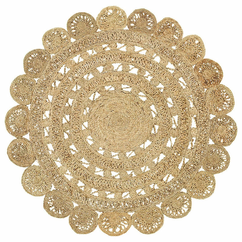 Add global style and artistry to any space with this hand-braided jute area rug. Long strips of dried jute are washed and meticulously braided, then sewn into a beautiful concentric circle design in this round rug. Unbacked and available in three different sizes, this versatile piece will add texture and natural cushion to a variety of spaces and decor.