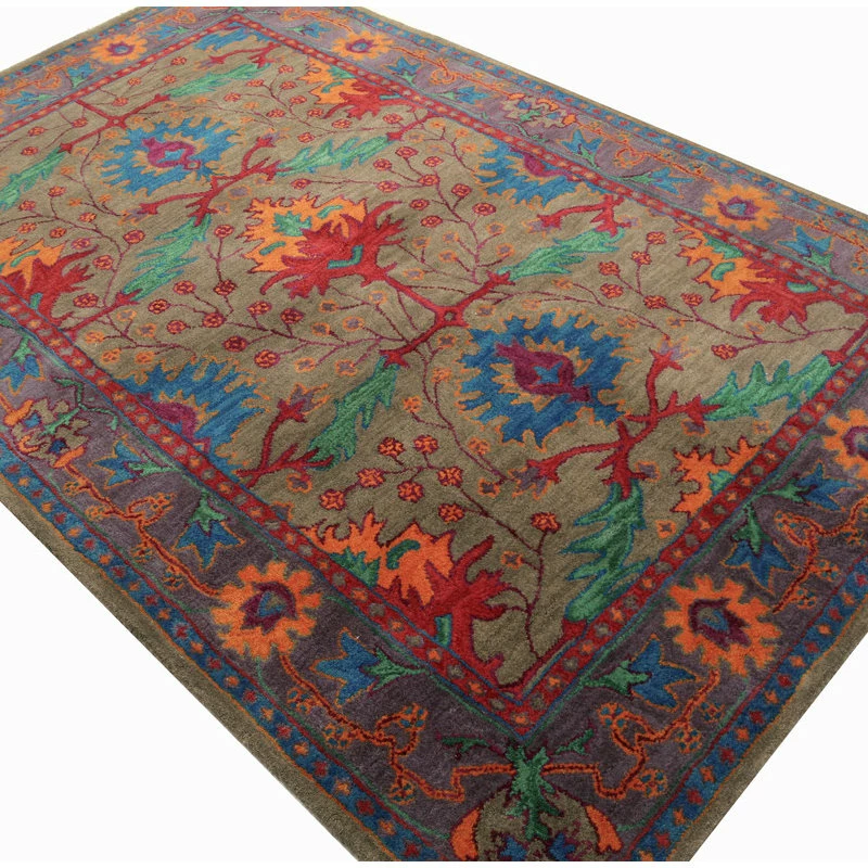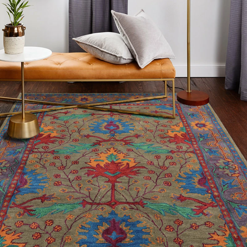Measuring 5.6 by 8.6 feet, this Bashian Somers Taupe Area Rug makes for a feature floor decoration wherever it is placed. It has a reinforced cotton canvas backing to provide protection and an extra layer of cushioning. The intricate wool pattern depicts antique oushaks and a Kashan design. Its orange and red shades recreate the warmth of Bashian’s transitional pieces.