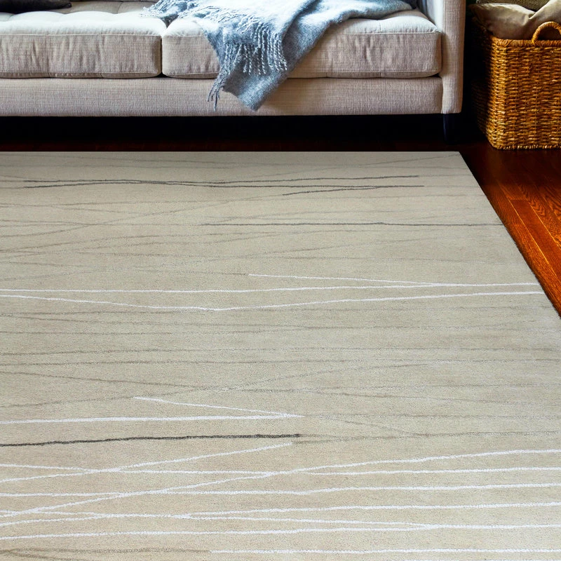 Treat your feet and your home with the 3.9-by-5.9-foot Bashian Sydney Wool Area Rug. Its surface consists of finely spun wool and shimmering viscose highlights, while a reinforced, cotton canvas backing protects and cushions. The unique fine lines pass through the beige background, recalling a natural, uncontrollable energy. Place this rug in your bedroom or living room for a contemporary design and a touch of vitality.