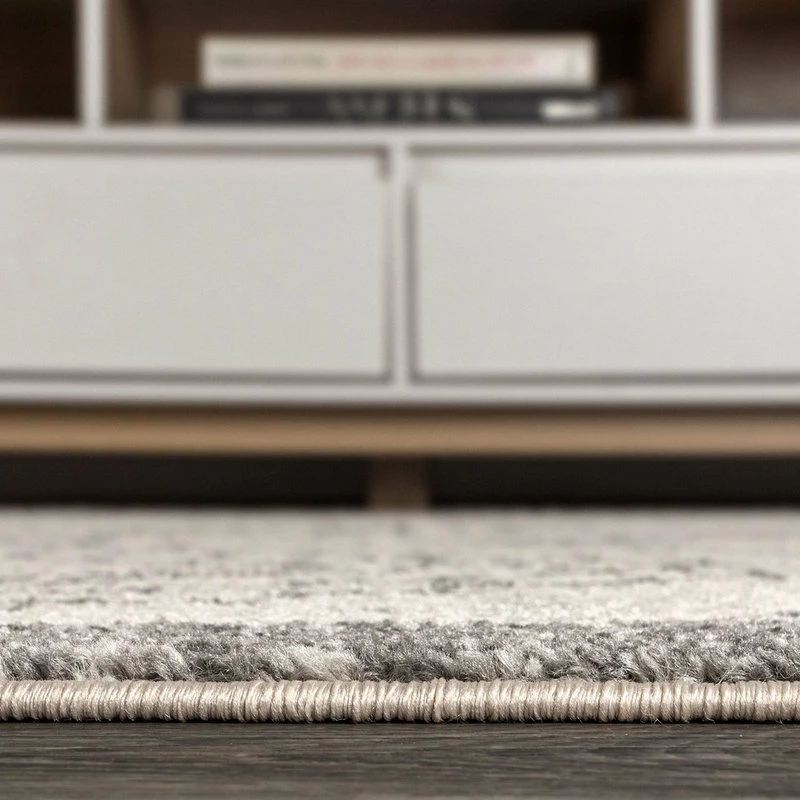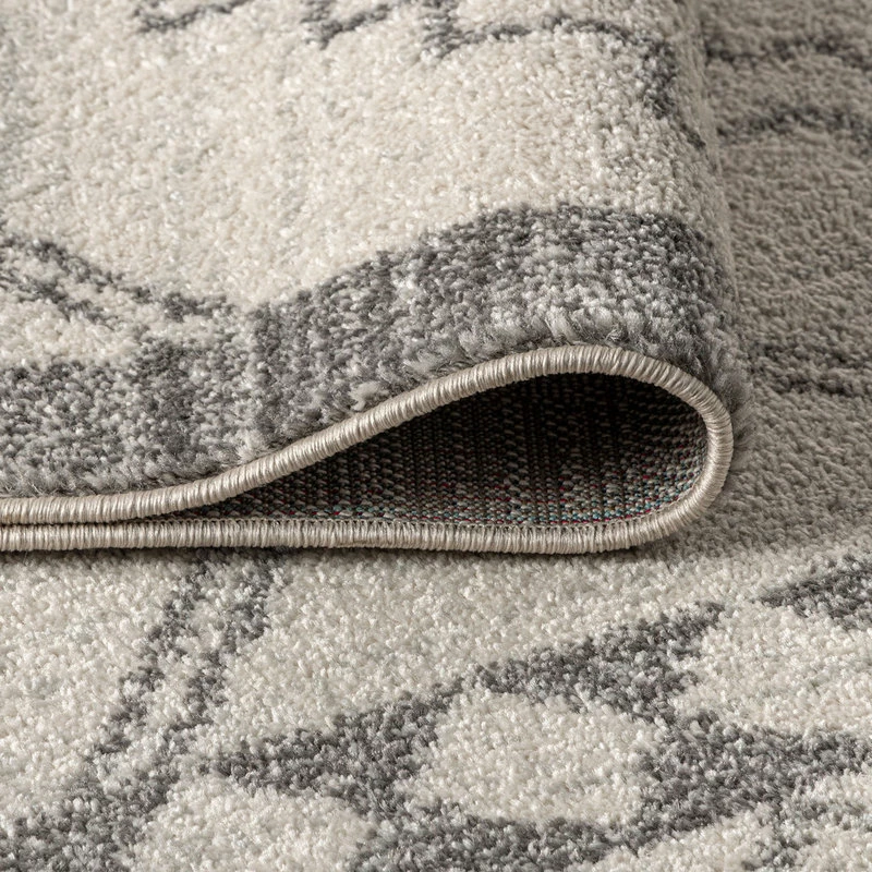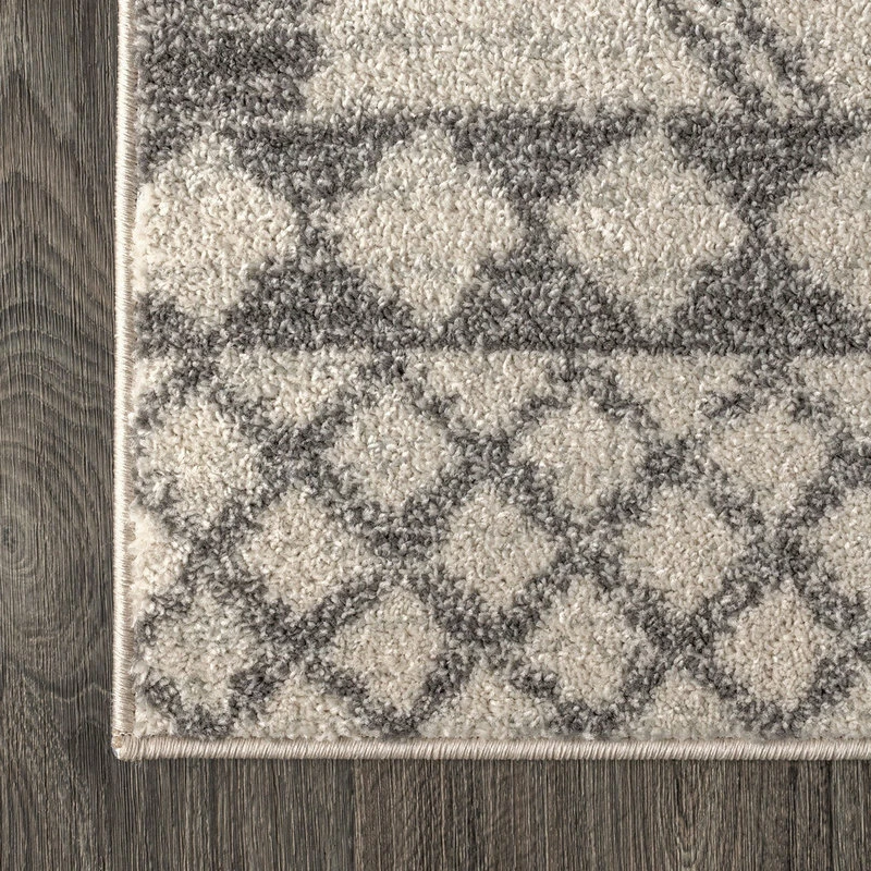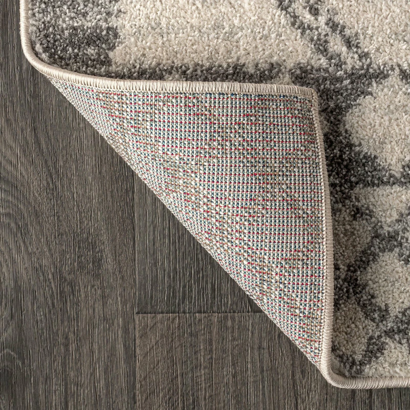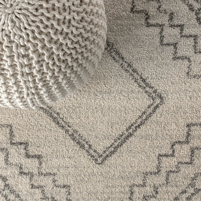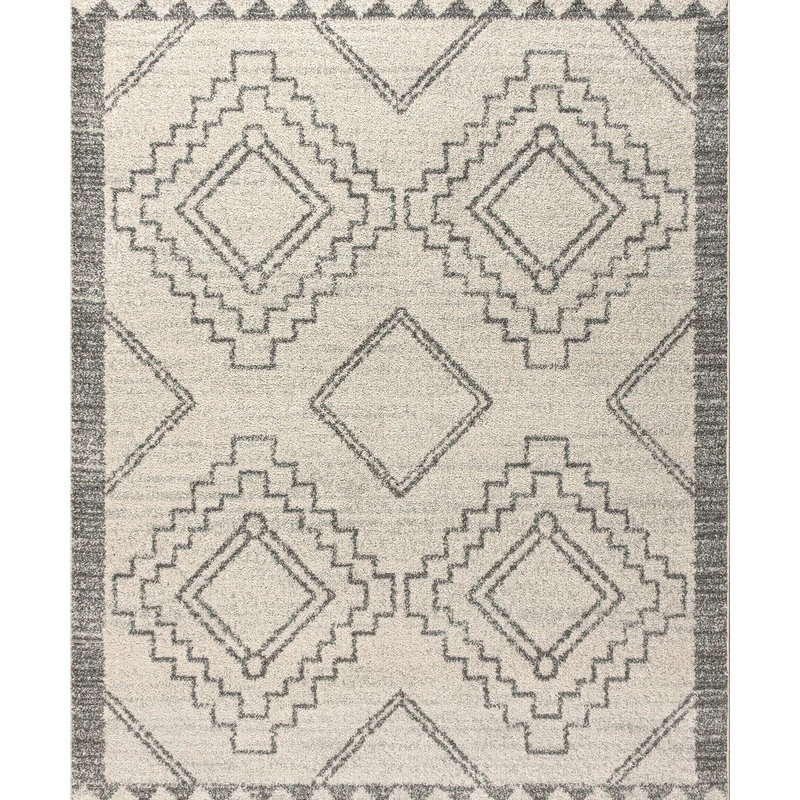Moroccan influences abound in the geometric design of this rug. Shades of gray create a lively medallion design against a deep ivory background. Add graphic impact to a modern room, or make this rug part of your Boho-chic story.