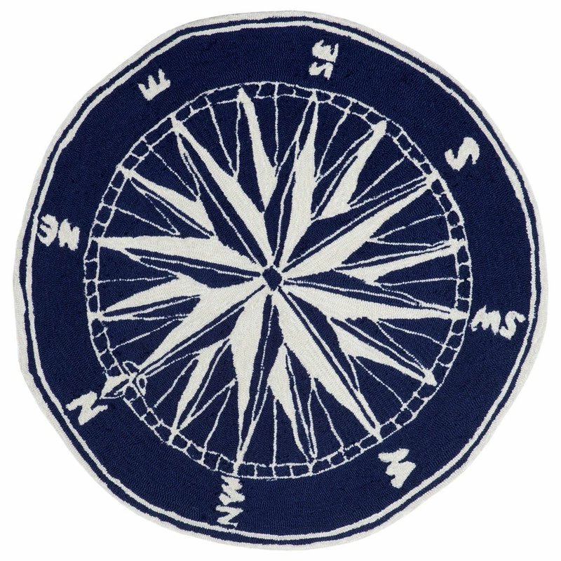 Best deal 🎁 Liora Manne Frontporch Compass Indoor/Outdoor Rug, Navy, 5′ Round ❤️