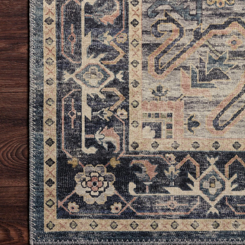 Timeless and traditional, Hathaway offers a hand-knotted vintage rug look with modern day durability and value. Created in China of 100% polyester, this printed interpretation offers old world style with the benefit of every day wear ability. Its Updated color palette is a perfect balance of warm tan, beige and buff with steely blue slate and navy.