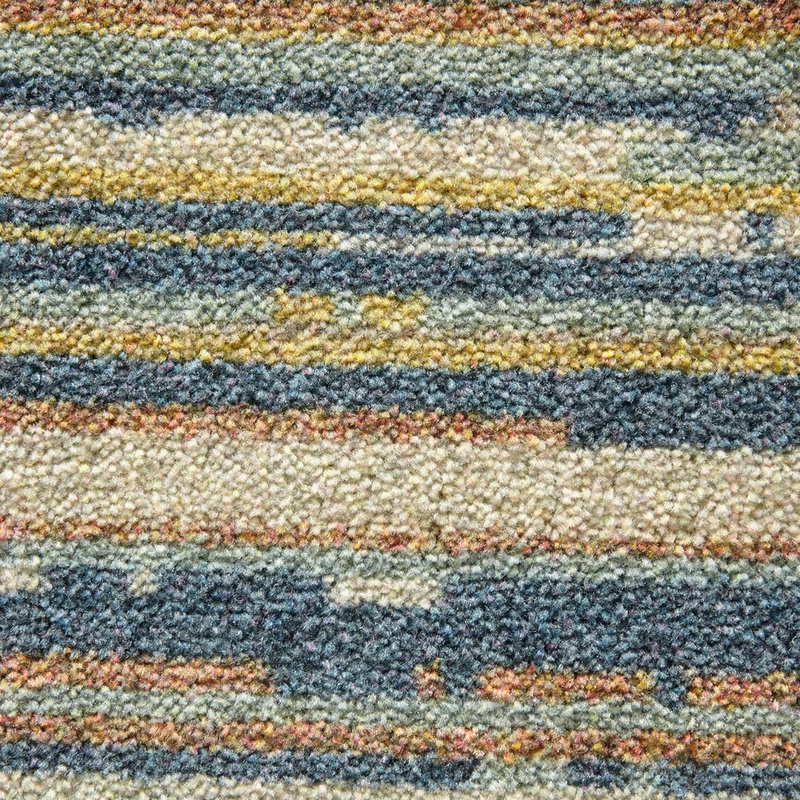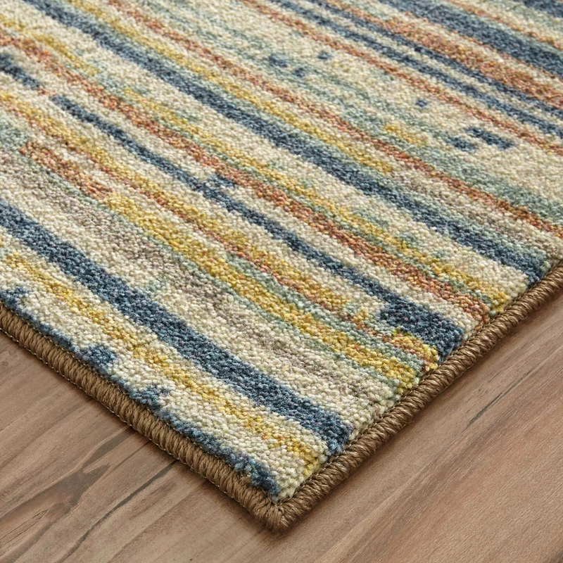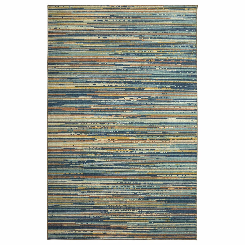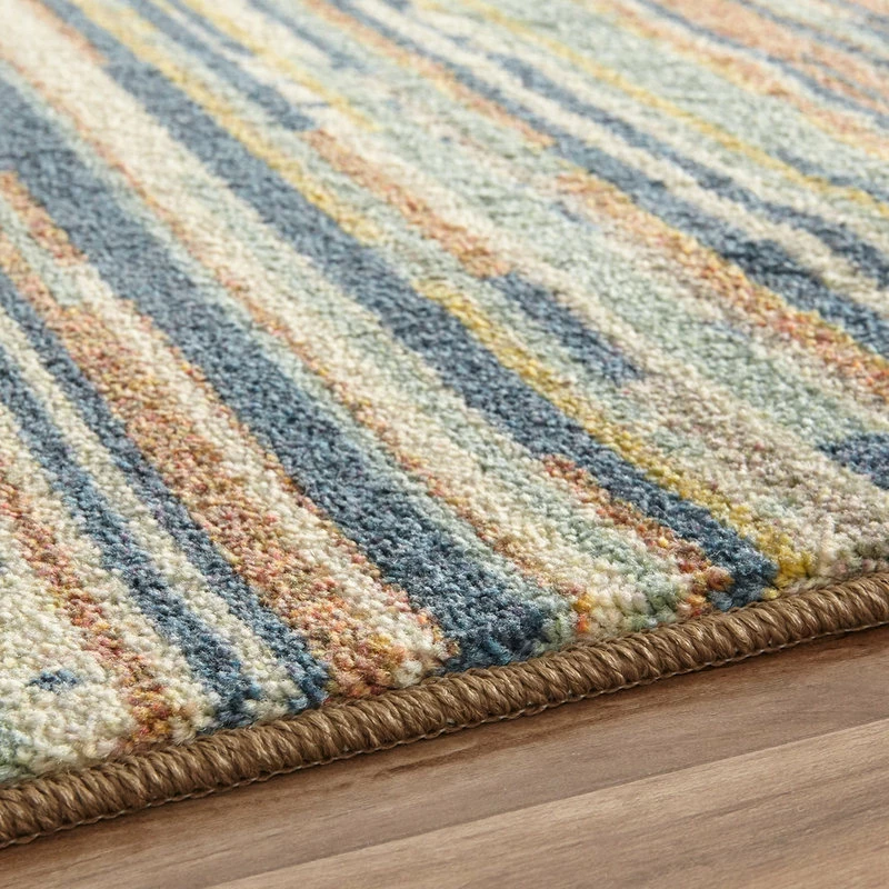 Thin stripes steal inspiration from transitional space dyed designs in the modern style of Mohawk Homes dark blue, brown, green and neutral tan colored Santos Area Rug. When it comes to color, the sky is no longer the limit with the infinite possibilities of Mohawk Homes revolutionary Prismatic Collection. Thoughtfully crafted in the U.S.A. in small batches utilizing Mohawk Homes exclusive Precision Dye Injected Printer, the Prismatic Collection is redefining printed rugs, literally one original design at a time. Each style in this collection features superior strength, stain resistance, and a cozy soft touch. Consciously created with Everstrand yarn, Mohawk Homes exclusive premium recycled polyester produced from post-consumer plastic water bottles, this collection offers environmentally friendly options that are as easy on the eyes as they are the world around us.