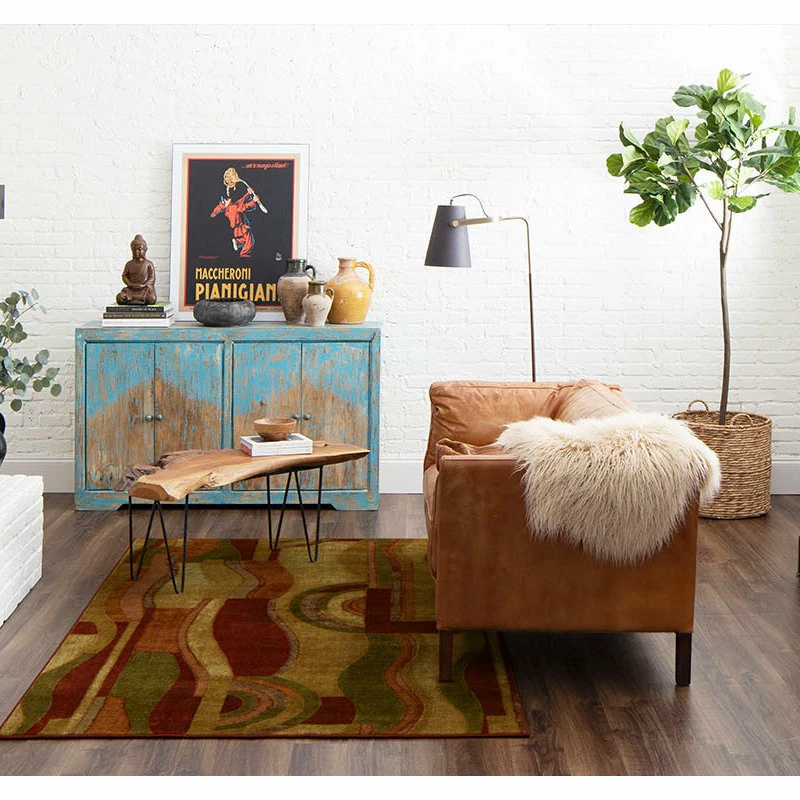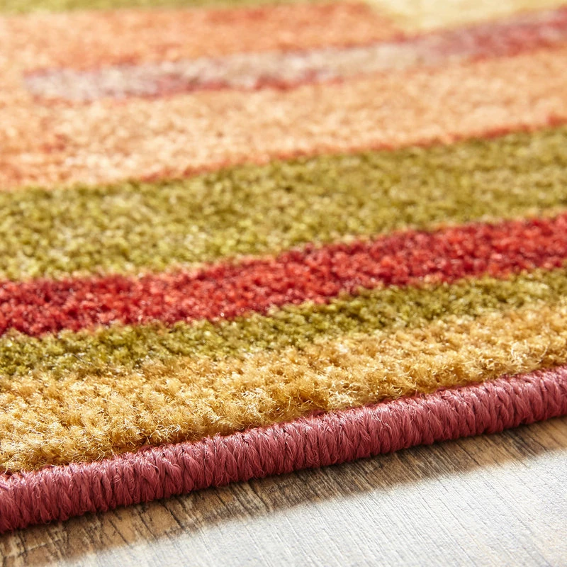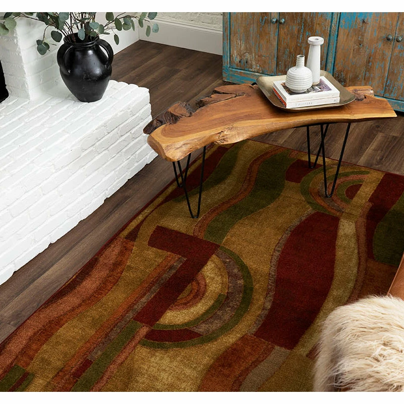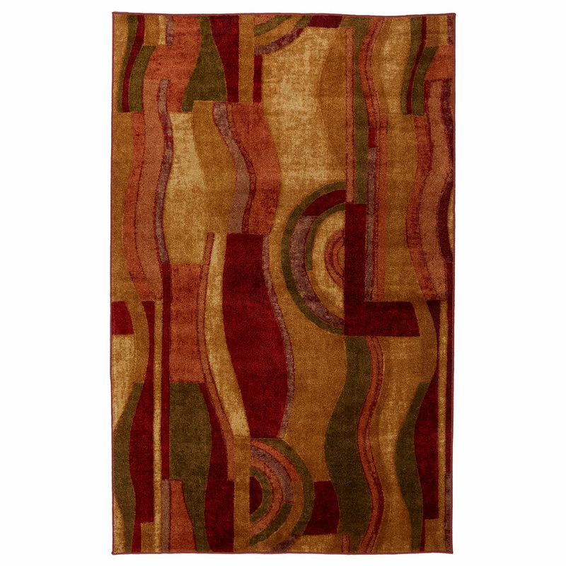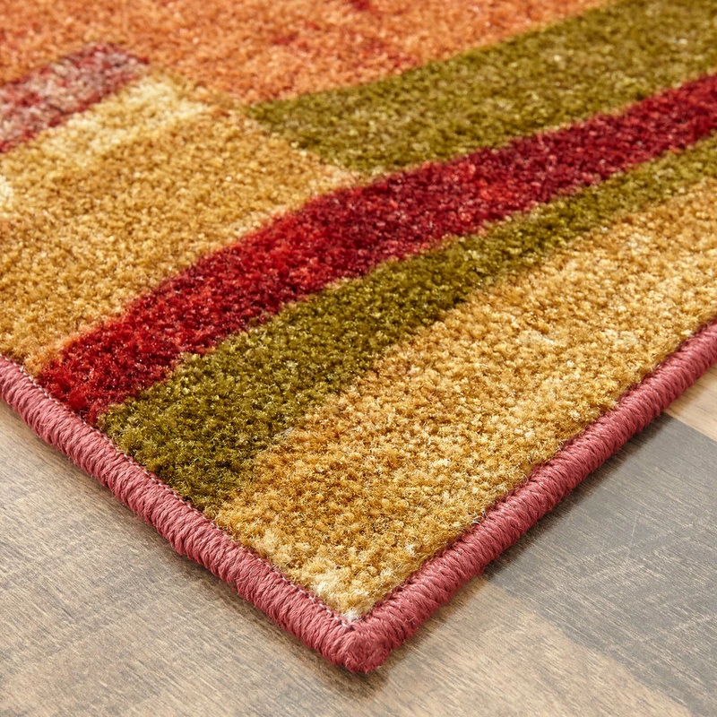 Combining a palette of earth tones with accents of red, this rug is a bold contemporary statement. The abstract pattern is great for both living room and dining room decor. Printed on the same machines that manufacture one of the world’s leading brands of printed carpet, this rug is extremely durable and vibrant. This technology allows the use of multiple colors to create a rug that is wonderfully designed and applicable to any room in your home. Crafted completely in the U.S.A., this rug is made from durable stain resistant nylon.