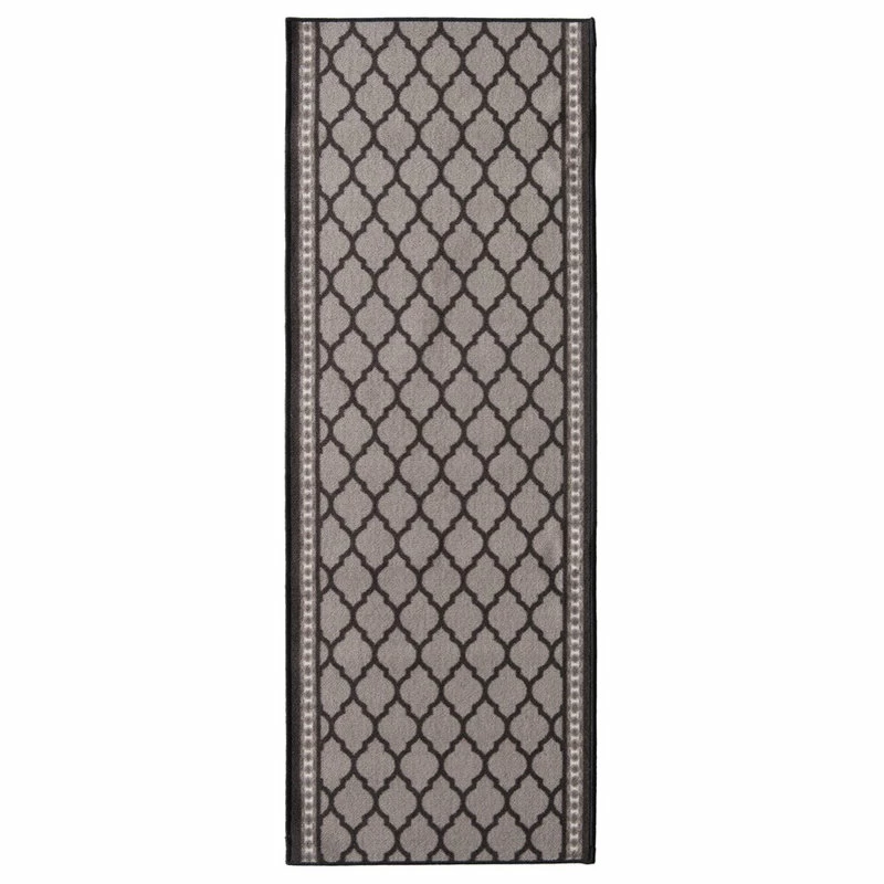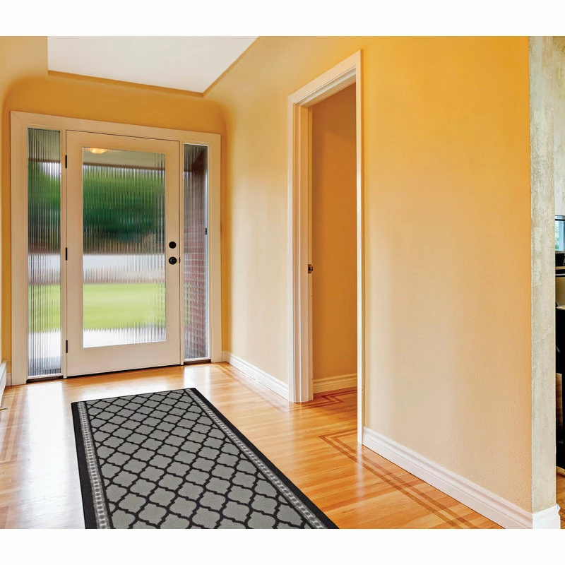Lend your space a pop of pattern with this mosaic runner mat, showcasing a classic trellis motif surrounded by a subtle border. This all-weather design is crafted from 100% nylon, a durable synthetic fiber that resists staining and fading to hold up to high traffic, making it suited for any indoor or outdoor space. Its non-slip rubber backing helps it stay put to ensure it does its job, while its low .03″ pile height allows doors to glide right over it. To clean, just toss it in the washing machine for a quick refresh.