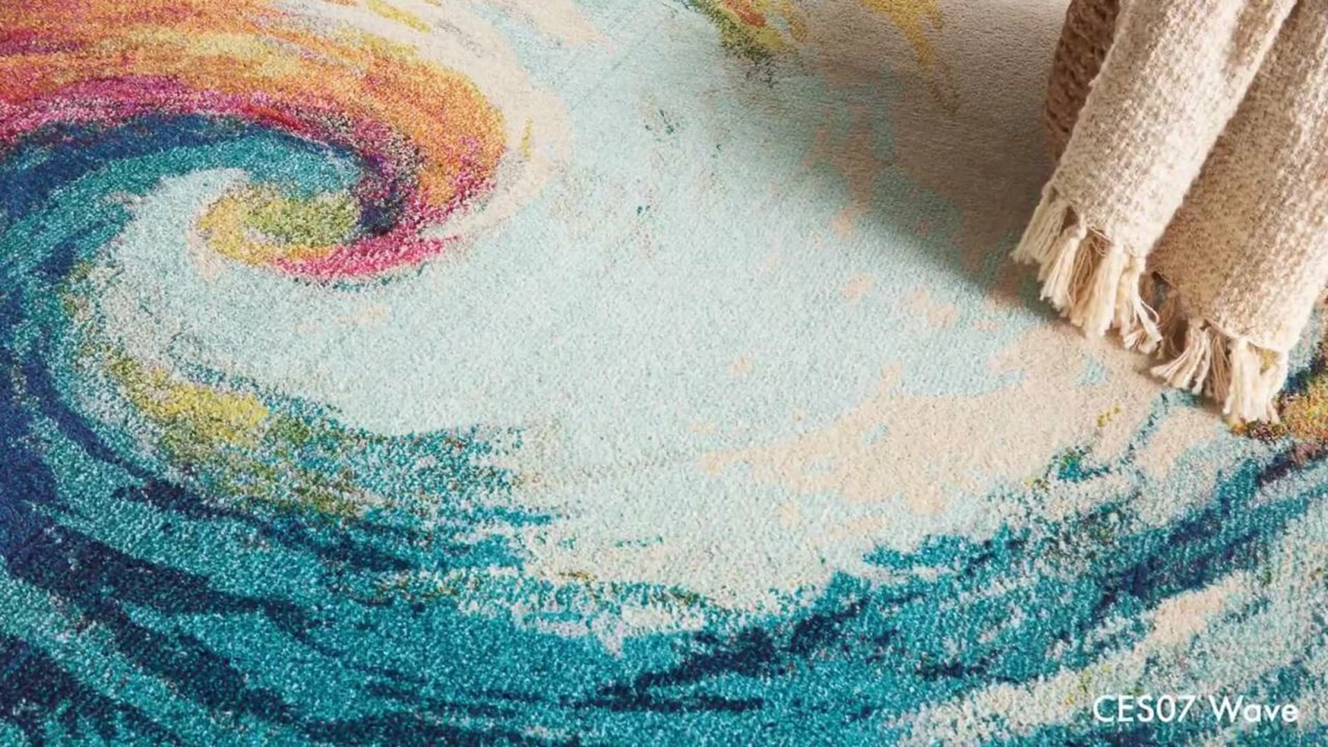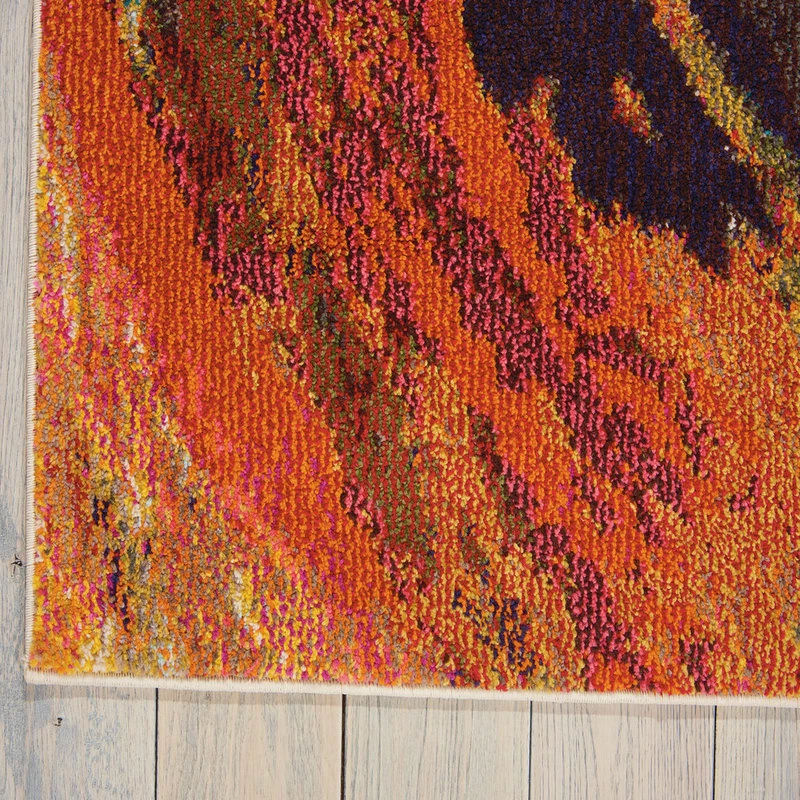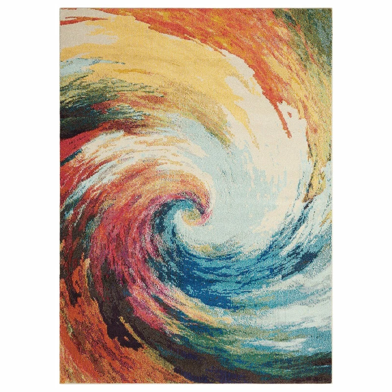 Warm vibes and cool style come standard with the Palm Springs Area Rug. This striking piece highlights a swirling, multicolor design that complements your space while striking a pose all its own. By taking a traditional form and updating it for the modern home, this rug provides protection for your floors and looks stylish doing it.