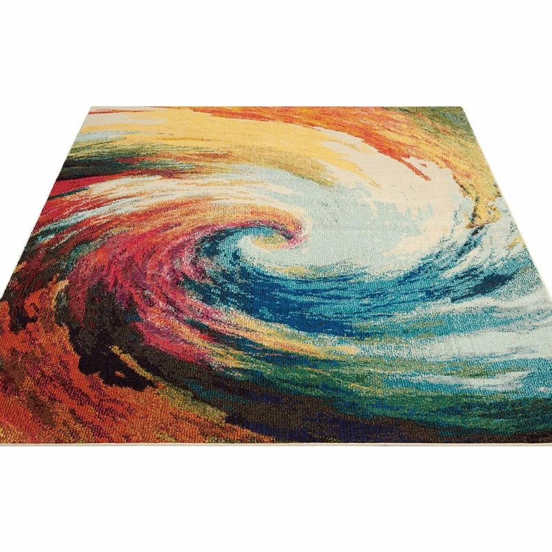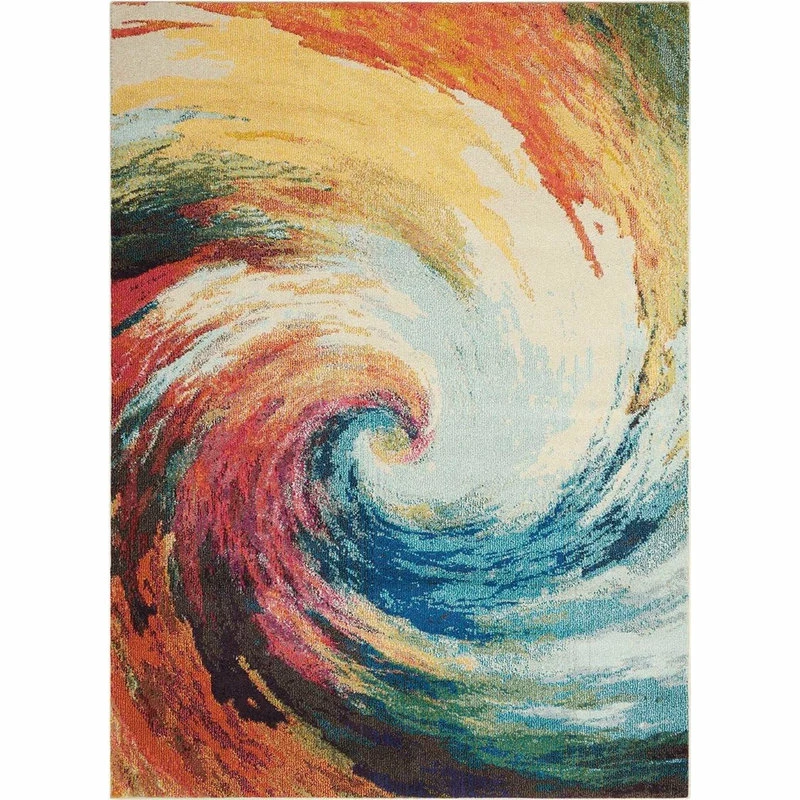 Warm vibes and cool style come standard with the Palm Springs Area Rug. This striking piece highlights a swirling, multicolor design that complements your space while striking a pose all its own. By taking a traditional form and updating it for the modern home, this rug provides protection for your floors and looks stylish doing it.