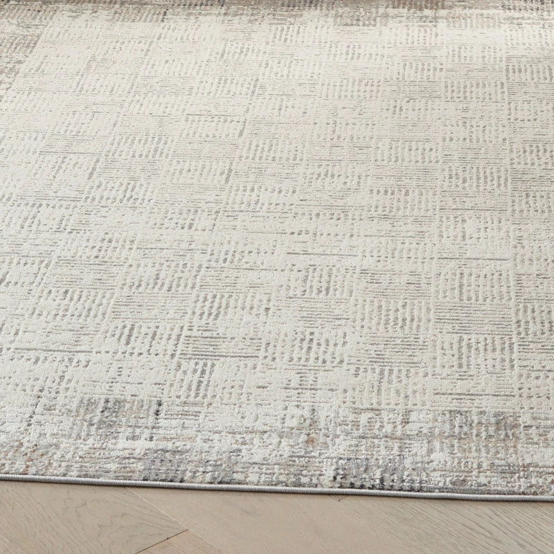 The classic solid border design gets a modern update with this Elation area rug. In Gray and ivory hues, this minimalistic cross hatch design adds cool contemporary flair to your living room, bedroom, dining room, or home office. Machine made of polyester and polypropylene in a low-profile, easy to clean pile, it’s an ideal choice for high traffic areas.