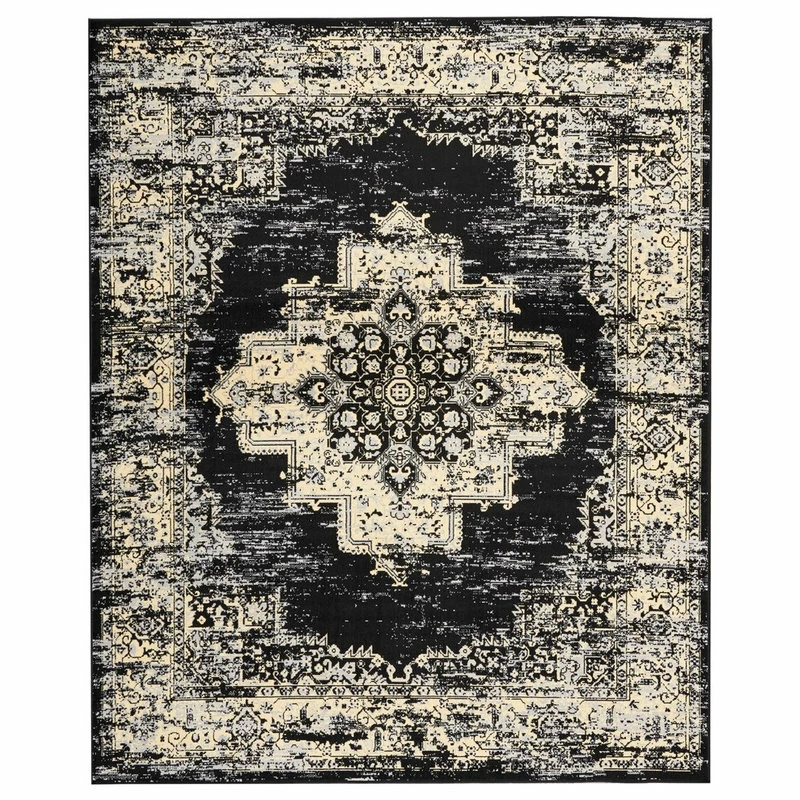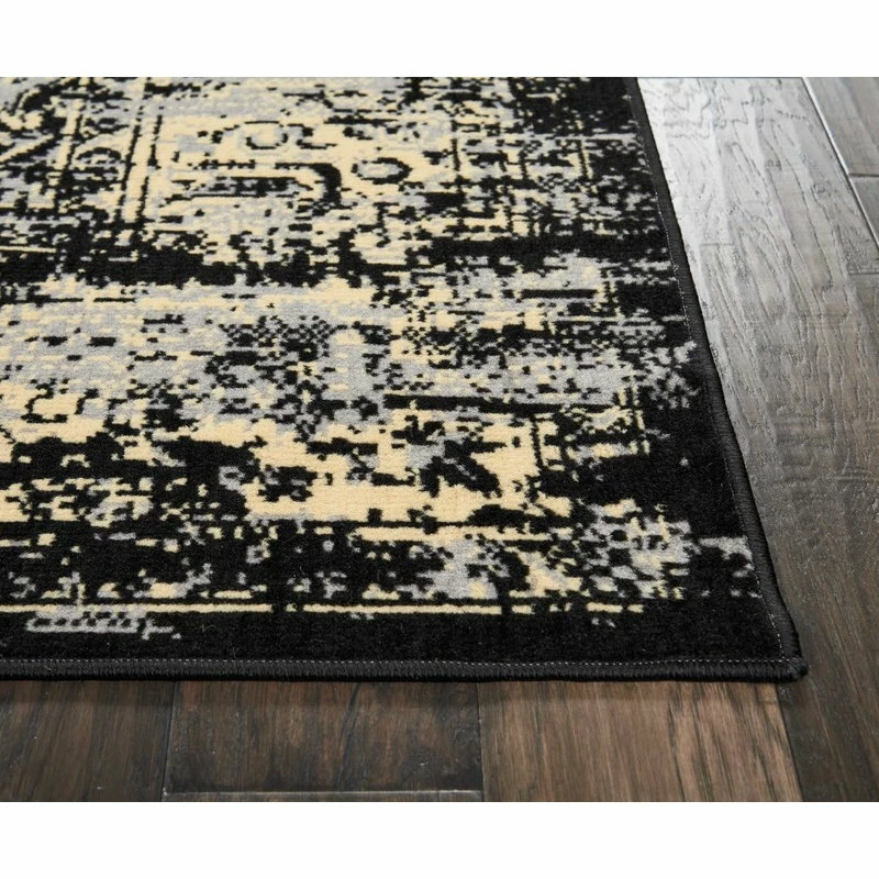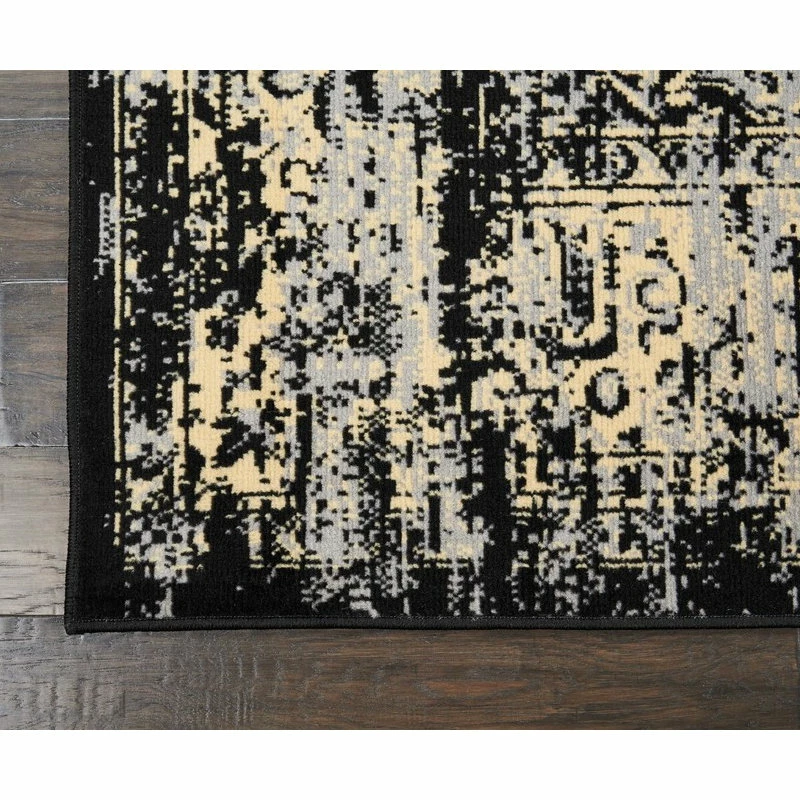 In intriguing shades of black and cream this brilliantly-bordered, central medallion Grafix area rug from Nourison will elevate the elegance quotient of any room. Masterfully power loomed from a satiny and ultra-hardy 100% polypropylene for a lavish feel, long wear and low maintenance.