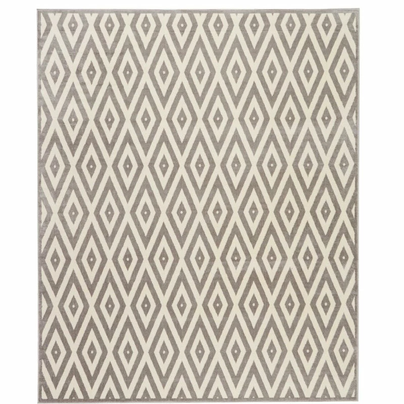 Concentric diamonds dazzle the eye in this boldly contemporary rug from the Grafix Collection by Nourison. The white-on-grey patterns are a mesmerizing addition to any room where you want to inject additional energy and sense of movement.