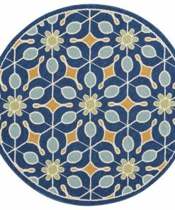 Flash Sale โค๏ธ Nourison Caribbean Floral Navy 4′ X ROUND Indoor Outdoor Area Rug ๐ฅ