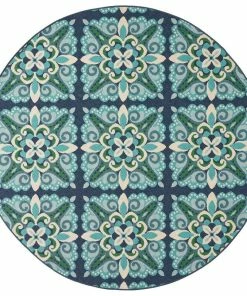 Best Sale ๐ฅ GDFStudio GDF Studio Sage Outdoor Floral Area Rug, Blue And Green, 7’10” Round ๐คฉ