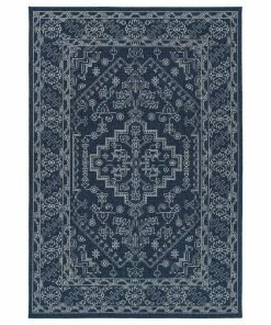 Flash Sale 😍 Newcastle Home Madelina Floral Blue And Ivory Indoor Or Outdoor Area Rug, 6’7″x9’6″ 🔔