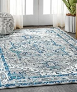 Best deal 🌟 JONATHAN Y Modern Persian Vintage Medallion Light Grey/Blue 8′ X 10′ Area Rug ❤️