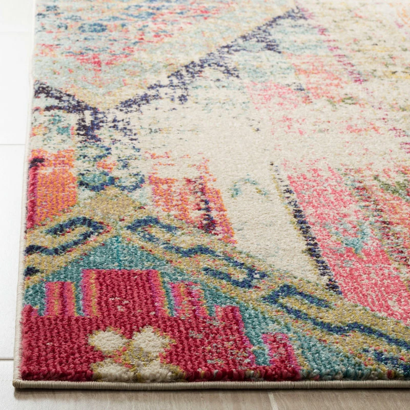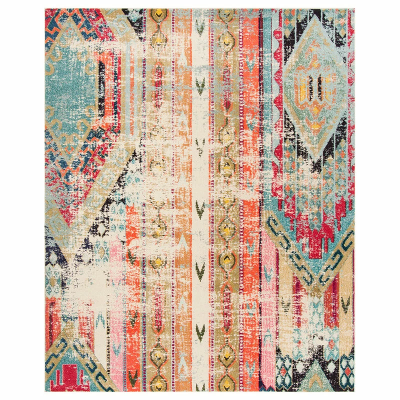 Free-spirited and vibrantly colored, the Safavieh Monaco Collection imparts boho-chic flair on fanciful motifs and classic rug designs. Contemporary decor preferences are indulged in the trendsetting styling and addictive look of Monaco. Power-loomed using soft, durable synthetic yarns creating an erased-weave patina that adds distinctive character to room decor.