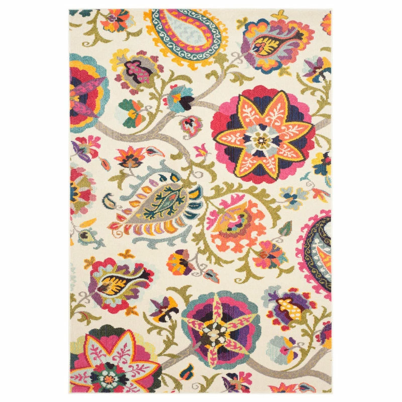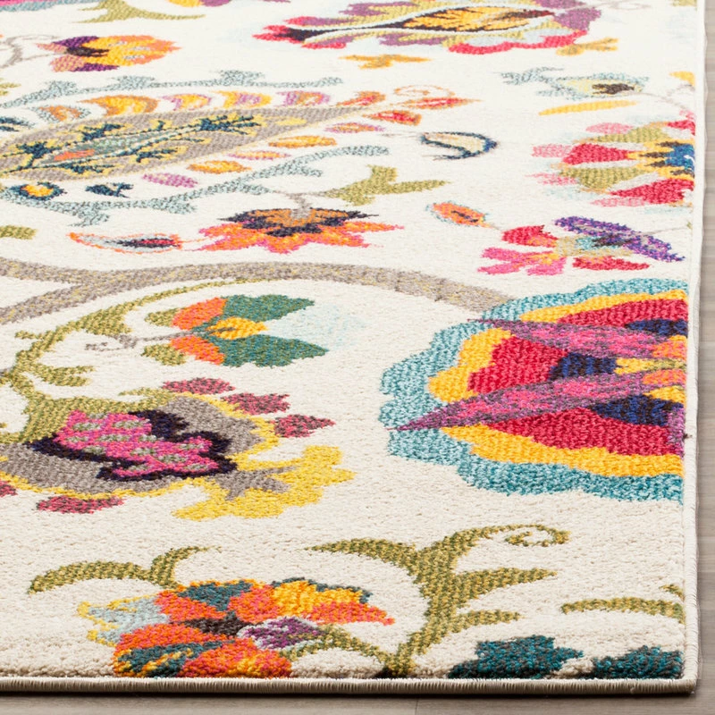Free-spirited and vibrantly colored, the Safavieh Monaco Collection imparts boho-chic flair on fanciful motifs and classic rug designs. Contemporary decor preferences are indulged in the trendsetting styling and addictive look of Monaco. Power-loomed using soft, durable synthetic yarns creating an erased-weave patina that adds distinctive character to room decor.