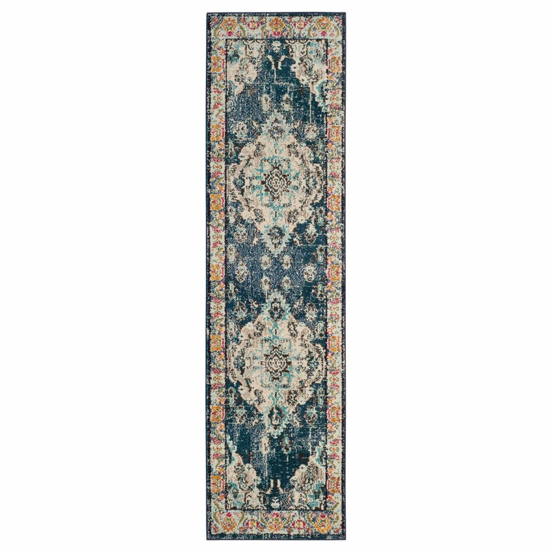 Free-spirited and vibrantly colored, the Safavieh Monaco Collection imparts boho-chic flair on fanciful motifs and classic rug designs. Contemporary decor preferences are indulged in the trendsetting styling and addictive look of Monaco. Power-loomed using soft, durable synthetic yarns creating an erased-weave patina that adds distinctive character to room decor.