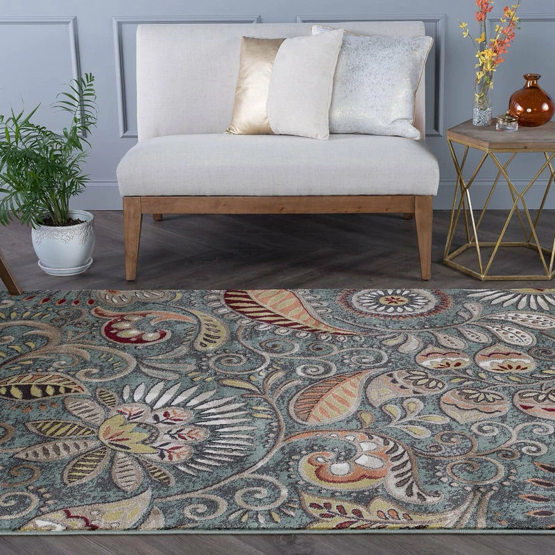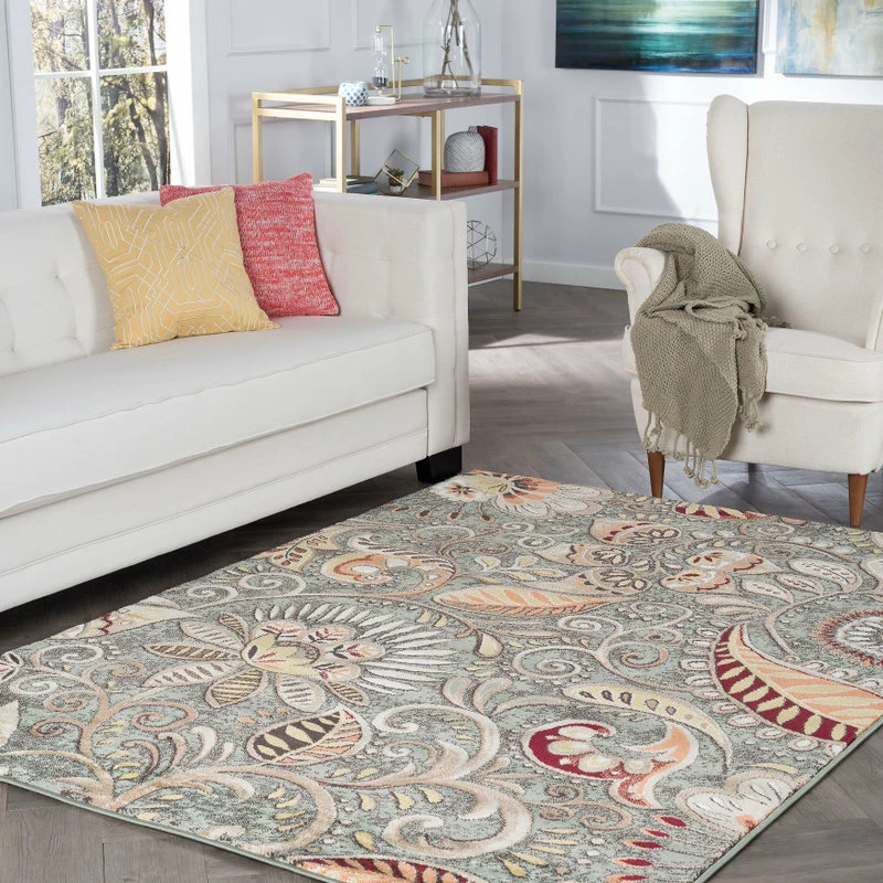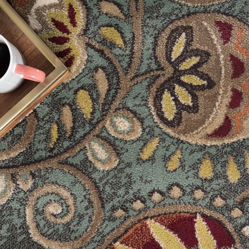 The whimsical pattern of the Giselle Transitional Floral Paisley Rug is sure to elicit compliments. With a background dyed in goldleaf, mocha, wine red, citron, lush brown, and creamy ivory, this is a playful rug sure to add charm to any home. This rug comes in various sizes and also in round to create a unified look throughout the home. Outfit your home with quality pieces like this that highlight your distinct decorating style.