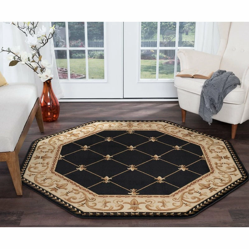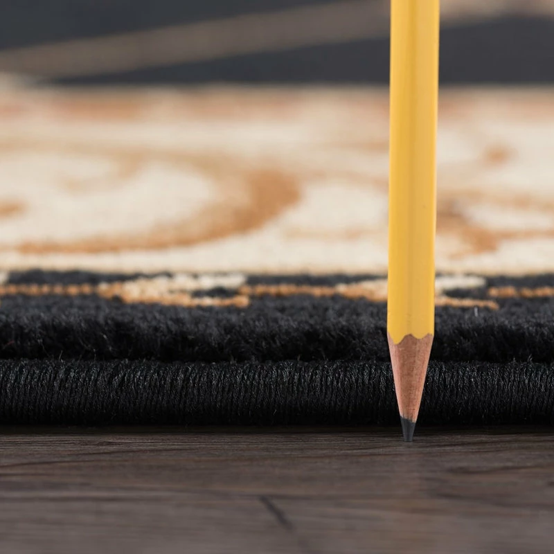 Blanket your floors in the traditional beauty of the Orleans Traditional Area Rug. This stunning rug features an intricate fleur de lis pattern with a scroll border in vibrant jet black, fawn beige and brass. Polypropylene fibers make this rug easy to care for and naturally stain-resistant perfect for high traffic areas, large kitchens or even under the family dining table.