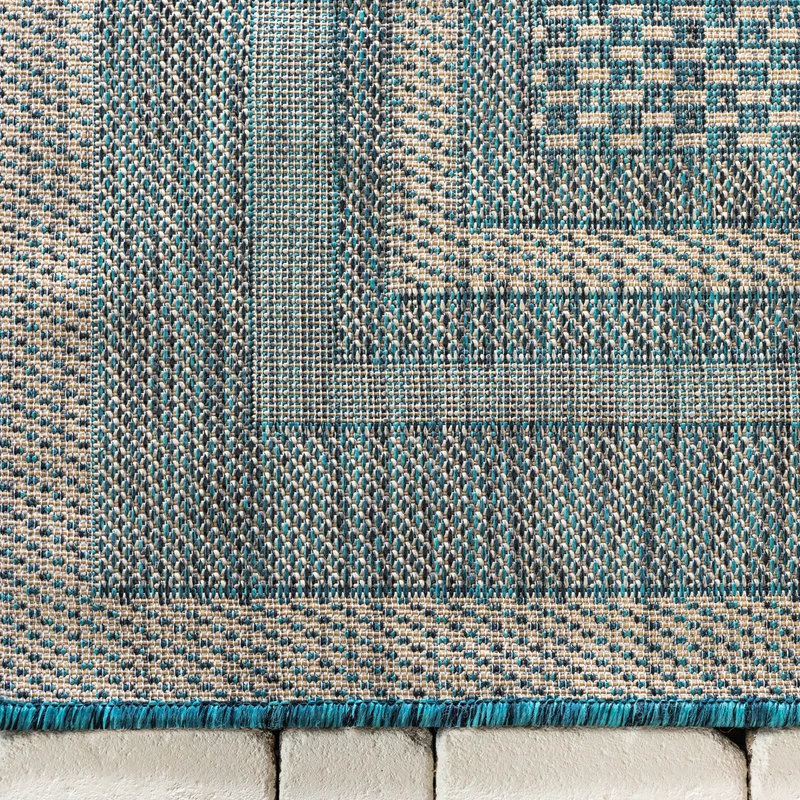 Brand new ✔️ Unique Loom Teal Soft Border Outdoor 5′ 0 X 8′ 0 Area Rug 👏